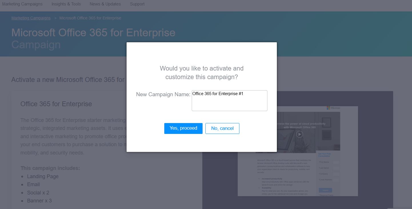 In the pop-up window, enter the name of the campaign and click Yes, Proceed.