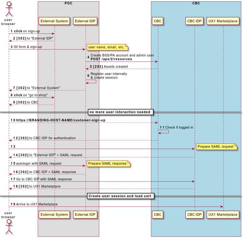 The external sign-up form acts as an external IDP for CloudBlue Commerce IDP and it must be configured to obtain the following parameters for single sign-on authentication to work: