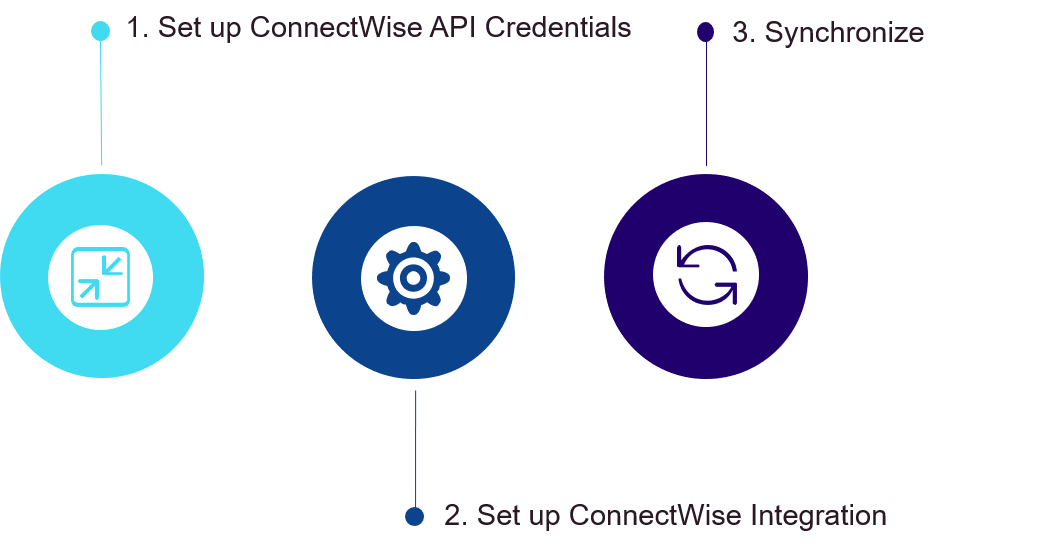 The following main steps a reseller needs to do to get started with the ConnectWise PSA Integration service: