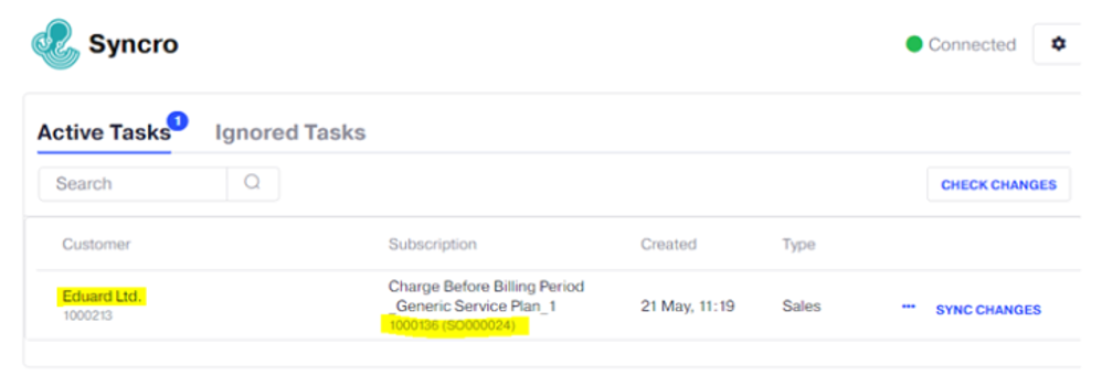 Select a synchronization task for your customer with the Sales order type. Click Sync Changes.