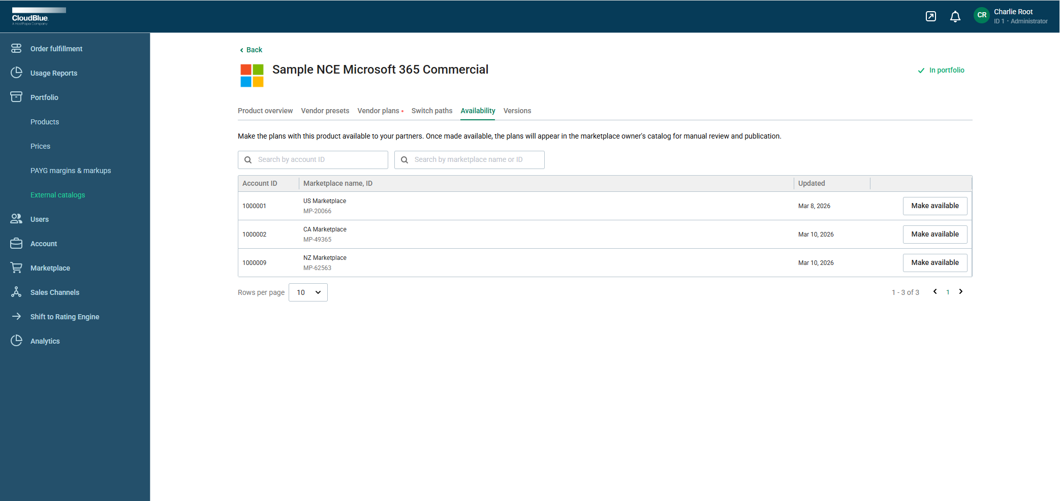 CBPFR-1620 Now, distributors can filter vendor-recommended plans by the country where they are applicable. When adding plans using UX1 > Portfolio > External Catalog, the country filter can be used to display only relevant plans, based on the countries where the marketplace operates. This can help distributors ensure compliance with the vendor’s regional restrictions while keeping their product catalog relevant and manageable.