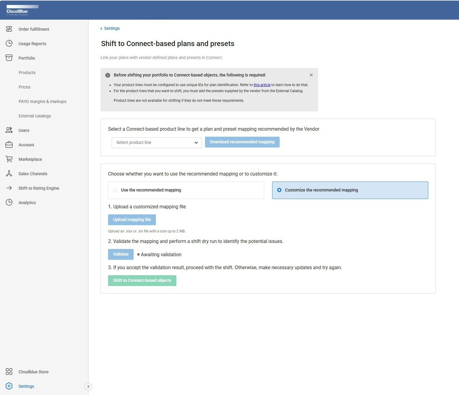 CBPFR-1282 Providers can shift their existing plans created using PPRs to the Connect-based plans and presets. For this purpose, CloudBlue added the ability for providers to: