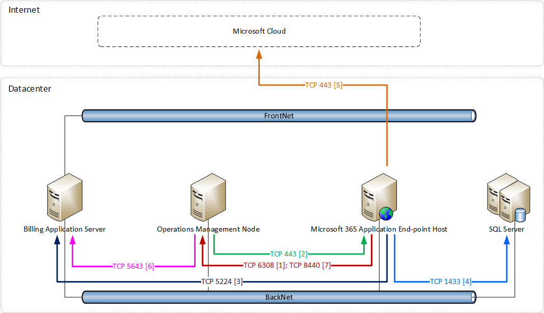 - [4]: This is used for access to Microsoft 365 gateway application databases. This connection is used if an external SQL Server instance is deployed. See Preparing SQL Server Databases for details.
