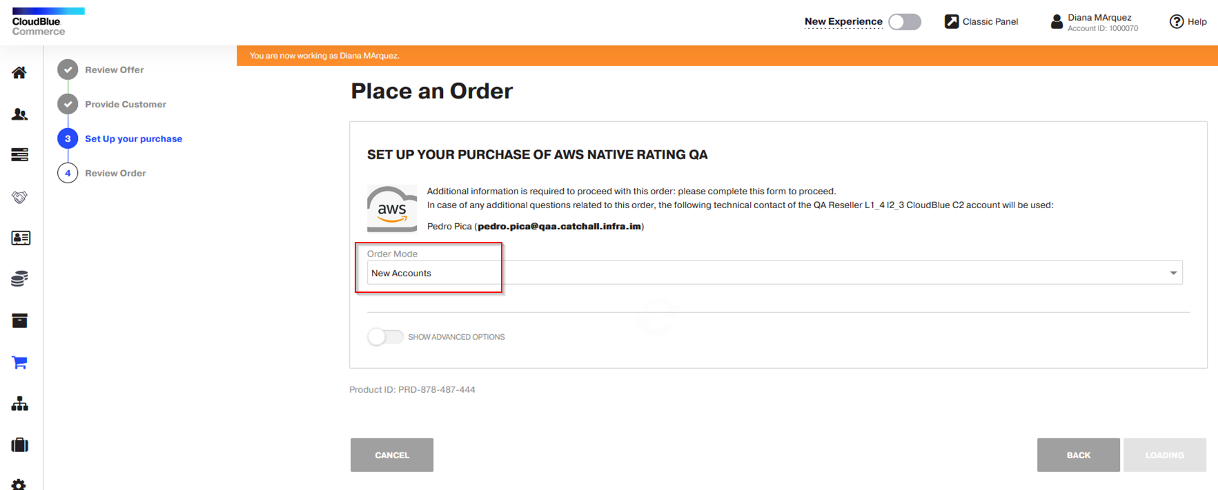 In the ordering process, the ECAM/SPAM configuration is only applied when the New Accounts option is selected in the Order Mode field.