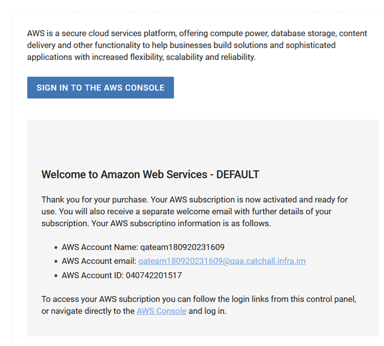 When the ECAM model is selected in the configuration parameter, end-customers will be able to specify their own AWS account email. Consequently, the new account will have the end-customer's domain rather than the provider’s domain.