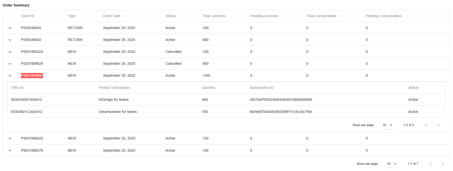 - The following filters cannot be used in conjunction with each other: Adobe Customer ID, Volume Pricing Level, Pending orders, status inactive, and 3-year commitment.