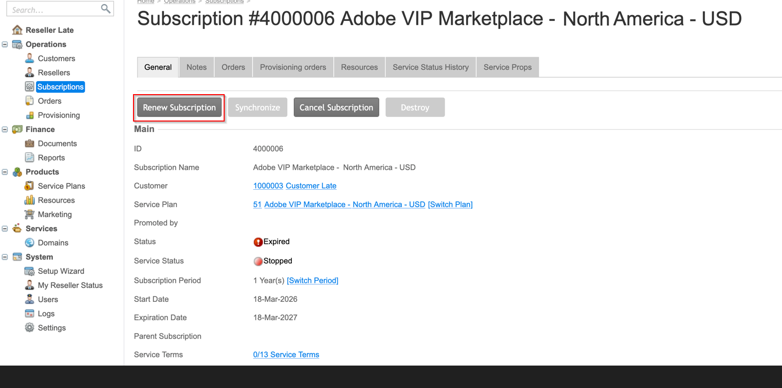Important: By default, CloudBlue allows a 13-day period for late renewals (configurable via the PPR Service Terms). Once this period or Adobe’s internal grace window expires, the subscription is permanently decommissioned and cannot be recovered.