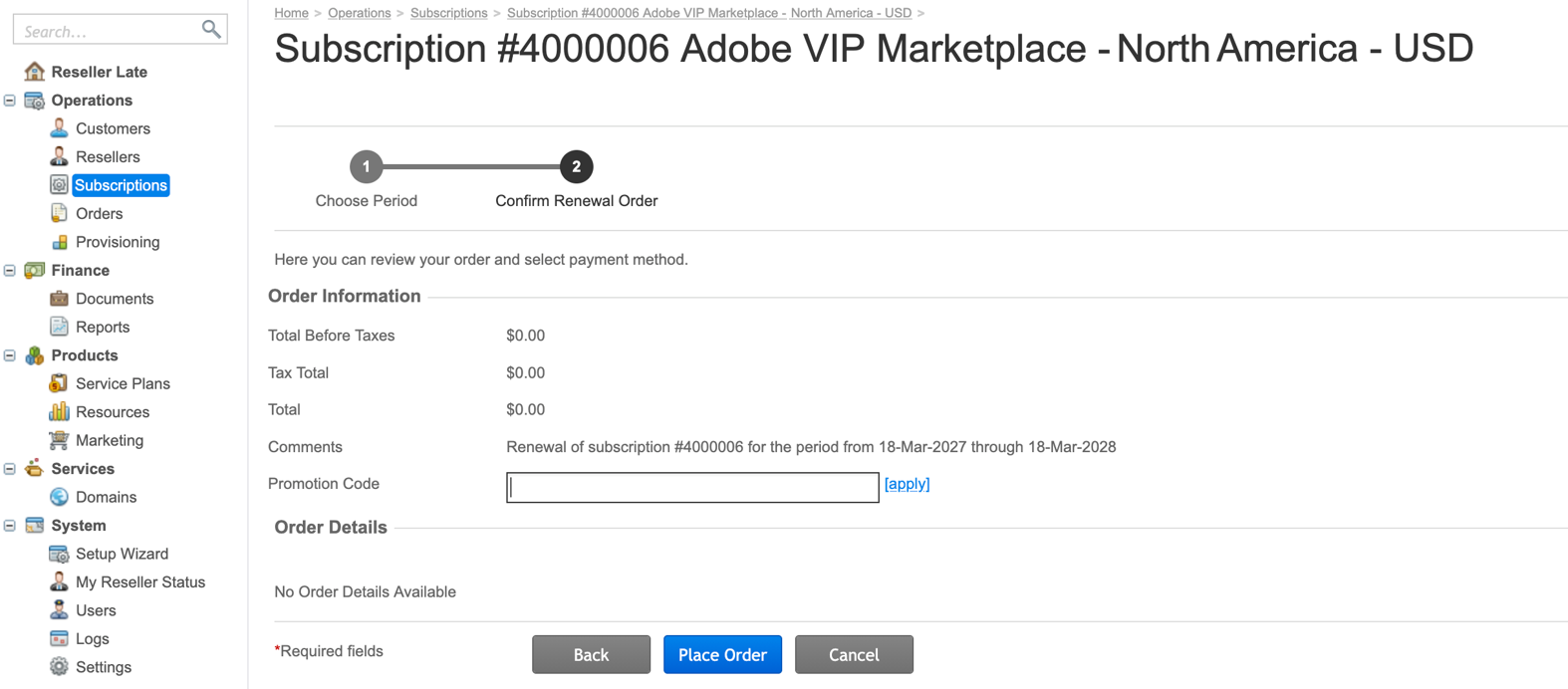 Review the order details and click Place Order.