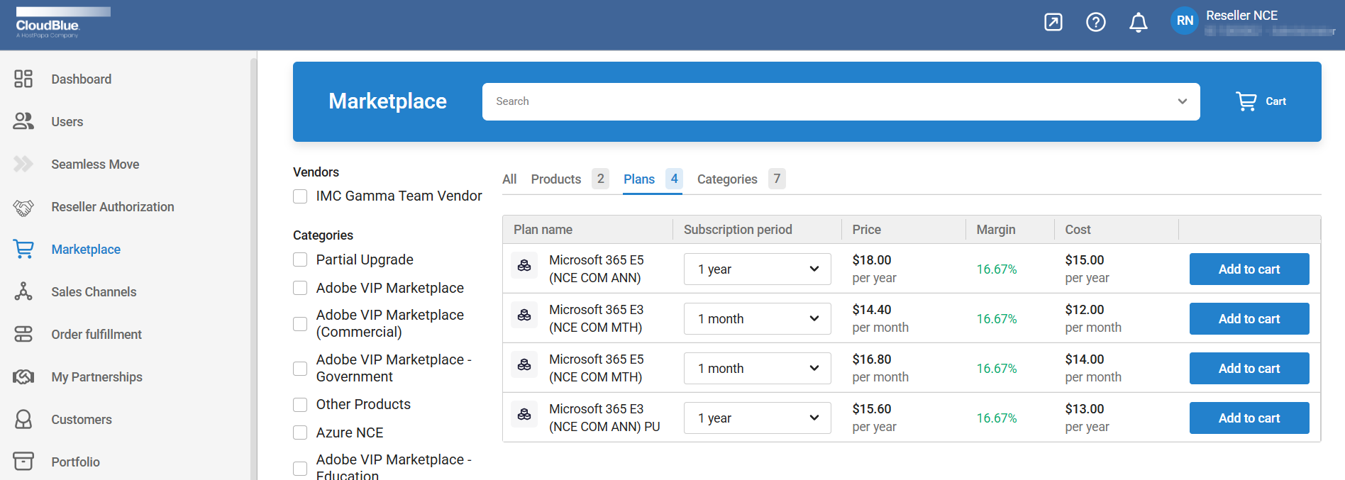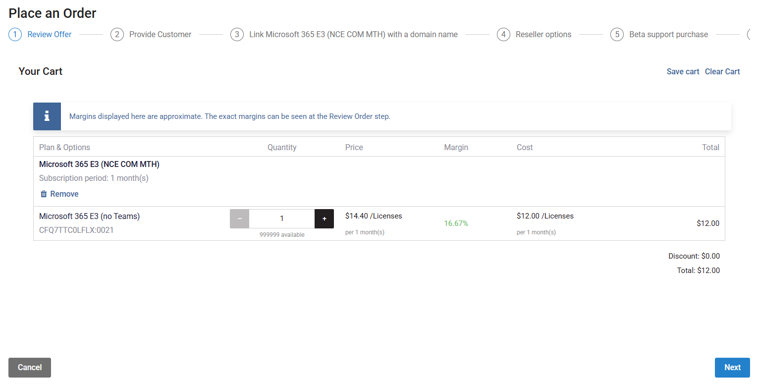 Expand the Product Collection, select one of the NCE Microsoft 365 products available (e.g., NCE Microsoft 365 (Commercial).