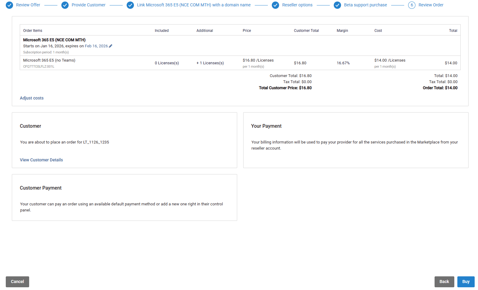 Once you have reviewed your order, click Buy to complete the order.