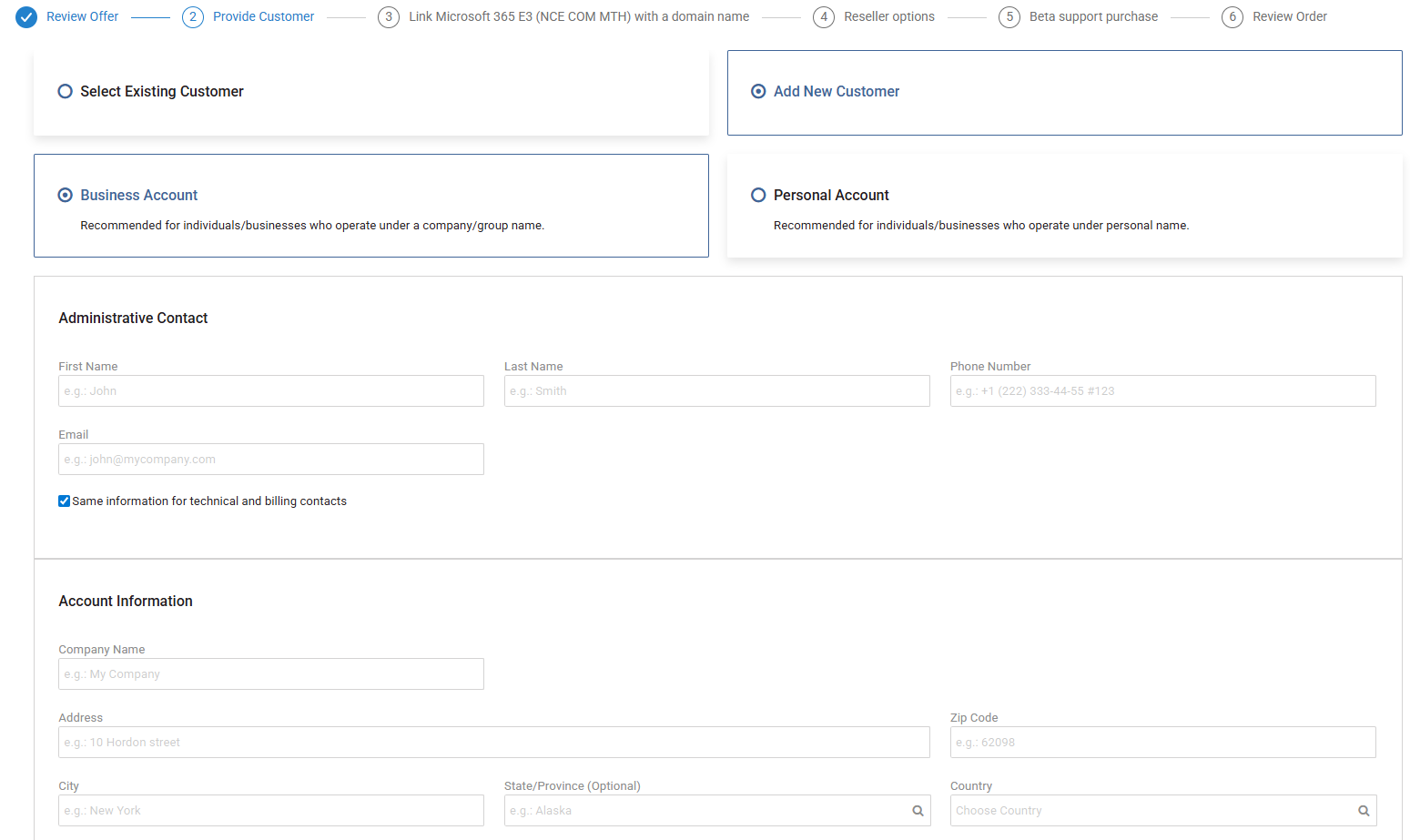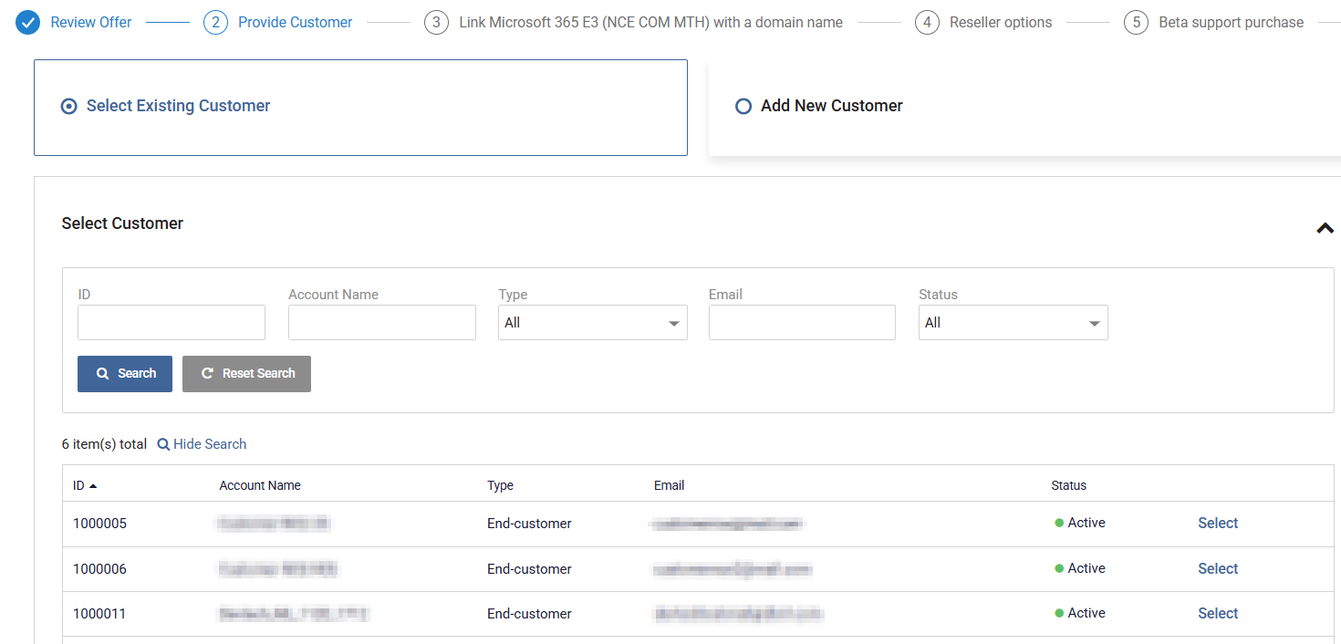 Choose whether to link this purchase to an existing CloudBlue customer or a new customer: