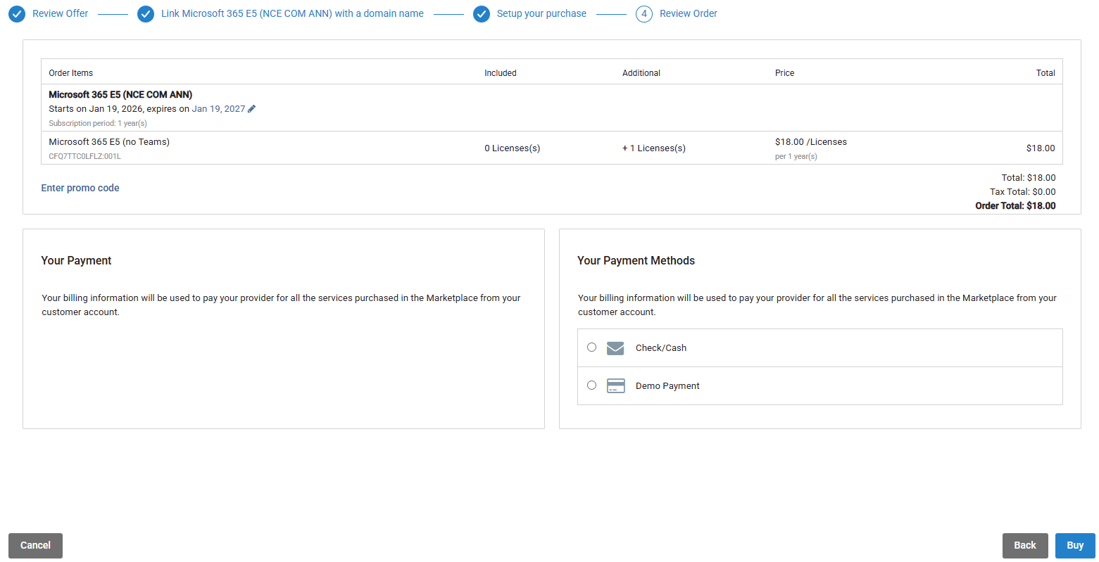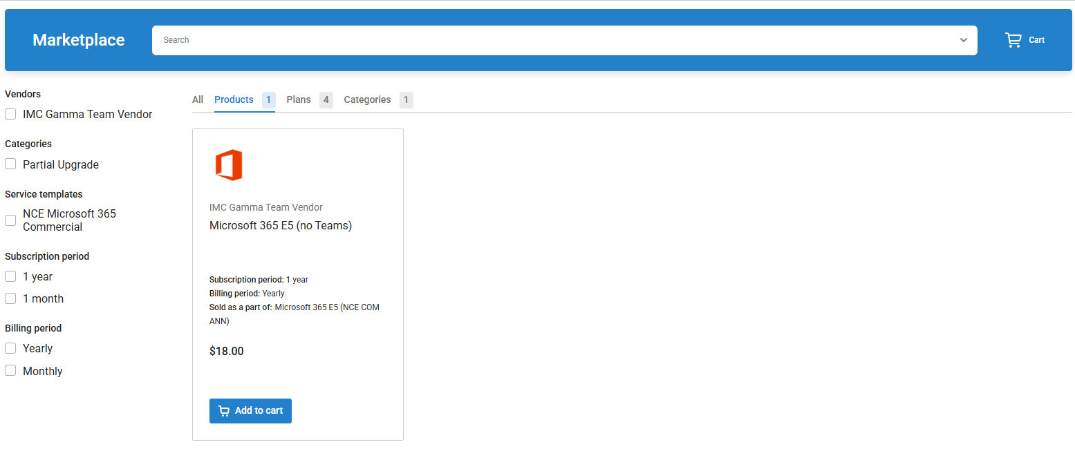 Log in to the Marketplace and select an NCE Microsoft 365 product.