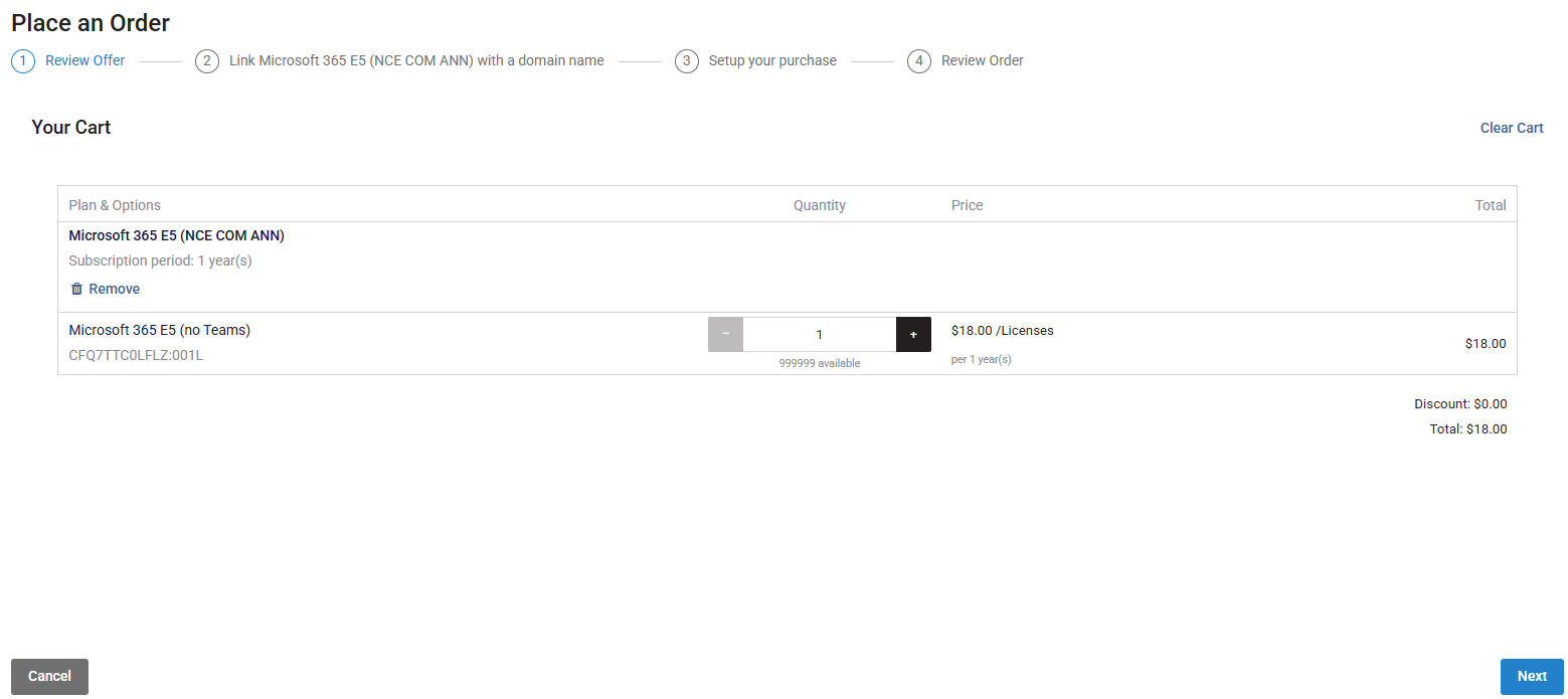 Microsoft Supportability: Because this self-service journey is a CloudBlue-specific enhancement, Microsoft does not officially recognize or support it. Microsoft may update the CSP channel at any time, which could impact the functionality of the CCP.