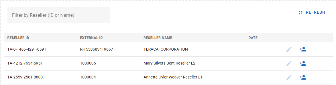 Use the search box to find the reseller by typing the reseller ID or reseller name.