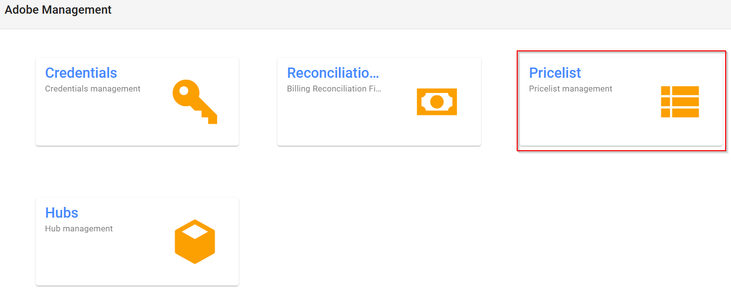 Adobe Management extension allows you to upload price lists provided by Adobe, which include all the SKUs, detailed pricing information, effective dates, start dates, deprecation dates, etc. By uploading price lists to Connect, you will be able to generate reseller price lists by applying the corresponding margins.