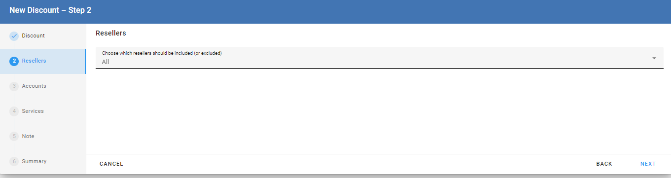 Select All to apply this rule to all the resellers, as this will be a default rule.