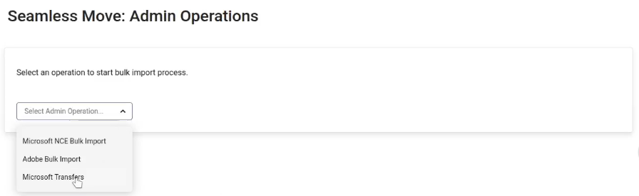 Navigate: In the CloudBlue UX1, go to Seamless Move > Admin Operations > Microsoft Transfers.