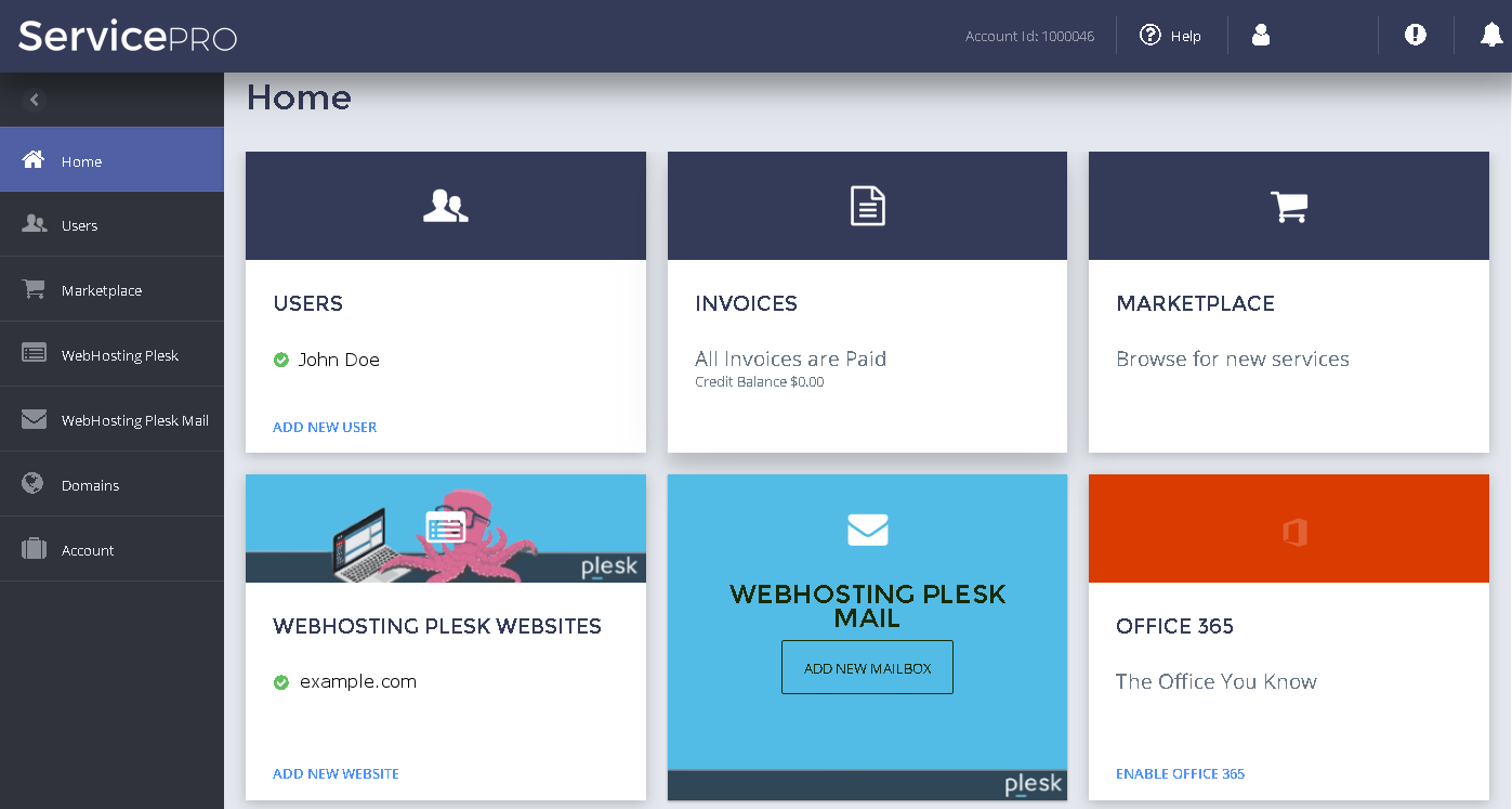 When users log in to their Customer Panel, they will be able to create websites and select which email solution to use on their domains: There are tiles offering WebHosting Plesk Mail, Office 365, and there may be other email solutions to choose from. There is also the WebHosting Plesk Mail item in the navigation pane on the left. This is where users can create mailboxes and configure anti-virus and spam protection.